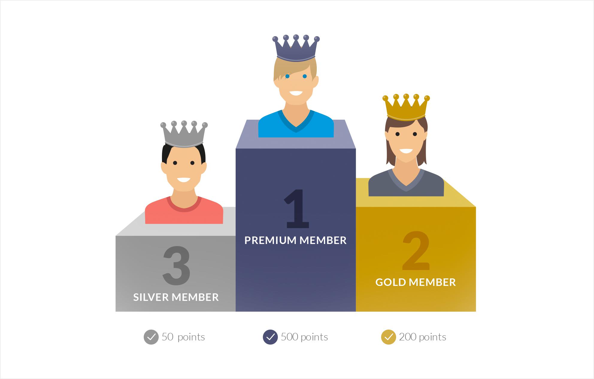 Com base no número de pontos fidelidade recebidos, os clientes podem ser classificados em um dos três níveis de membresia do clube.