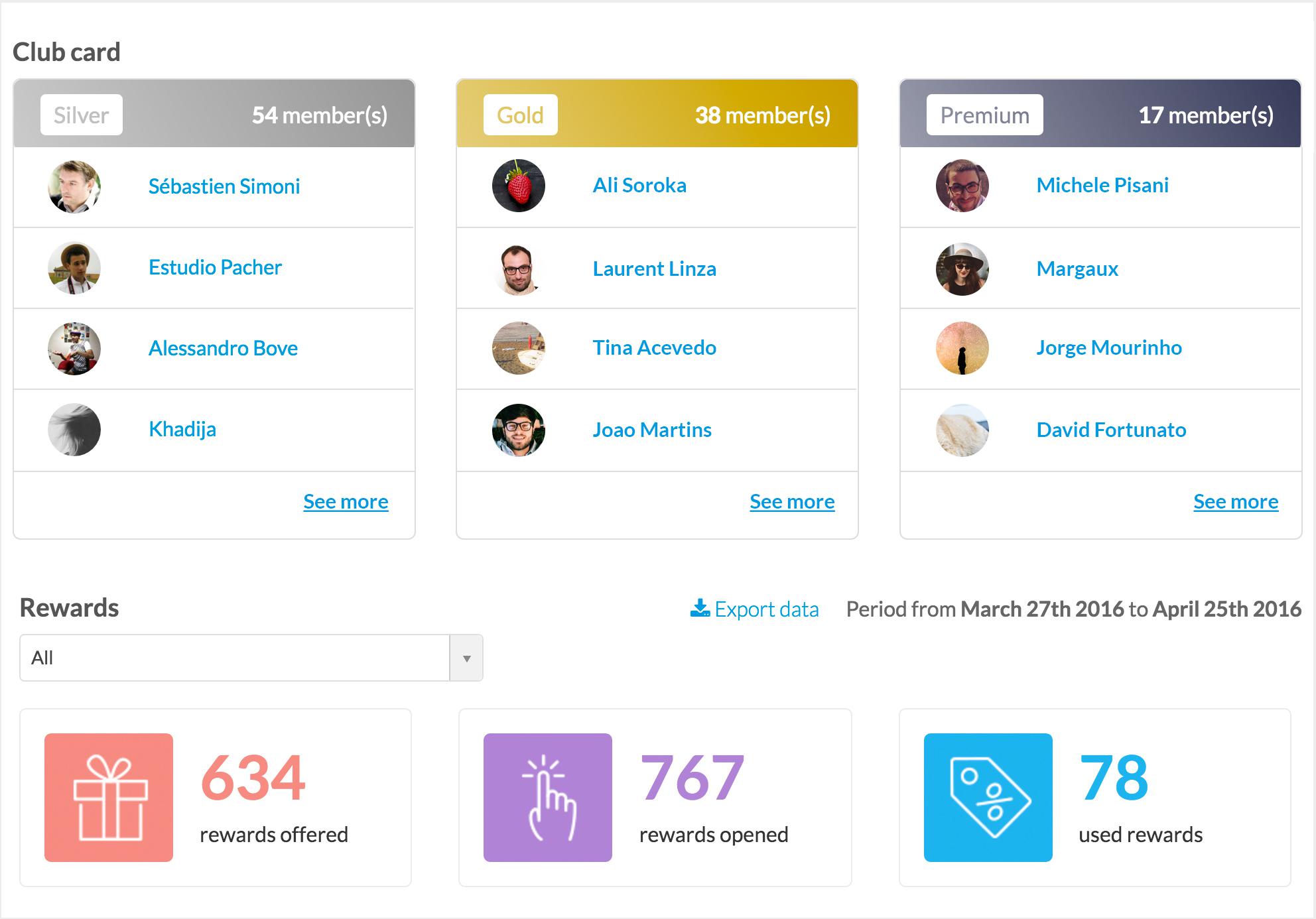 Visualize rapidamente seus clientes mais fiéis e a posição no seu clube, com base nos critérios que você definir.