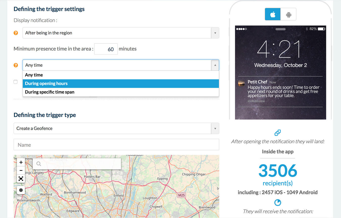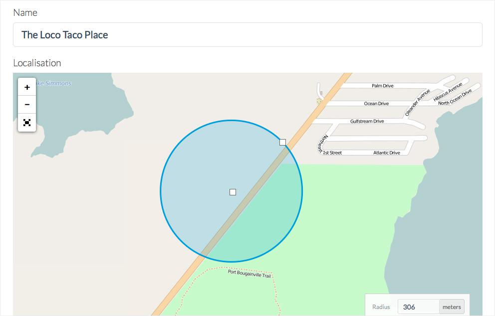 Defina as áreas geográficas para as quais uma notificação automatizada será enviada ao usar o seu app.