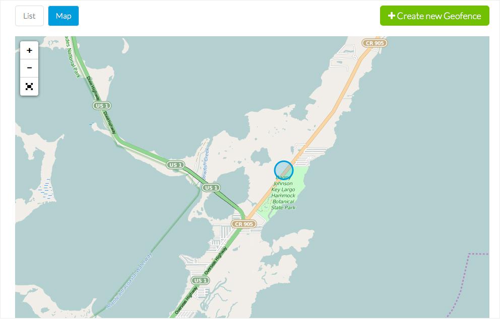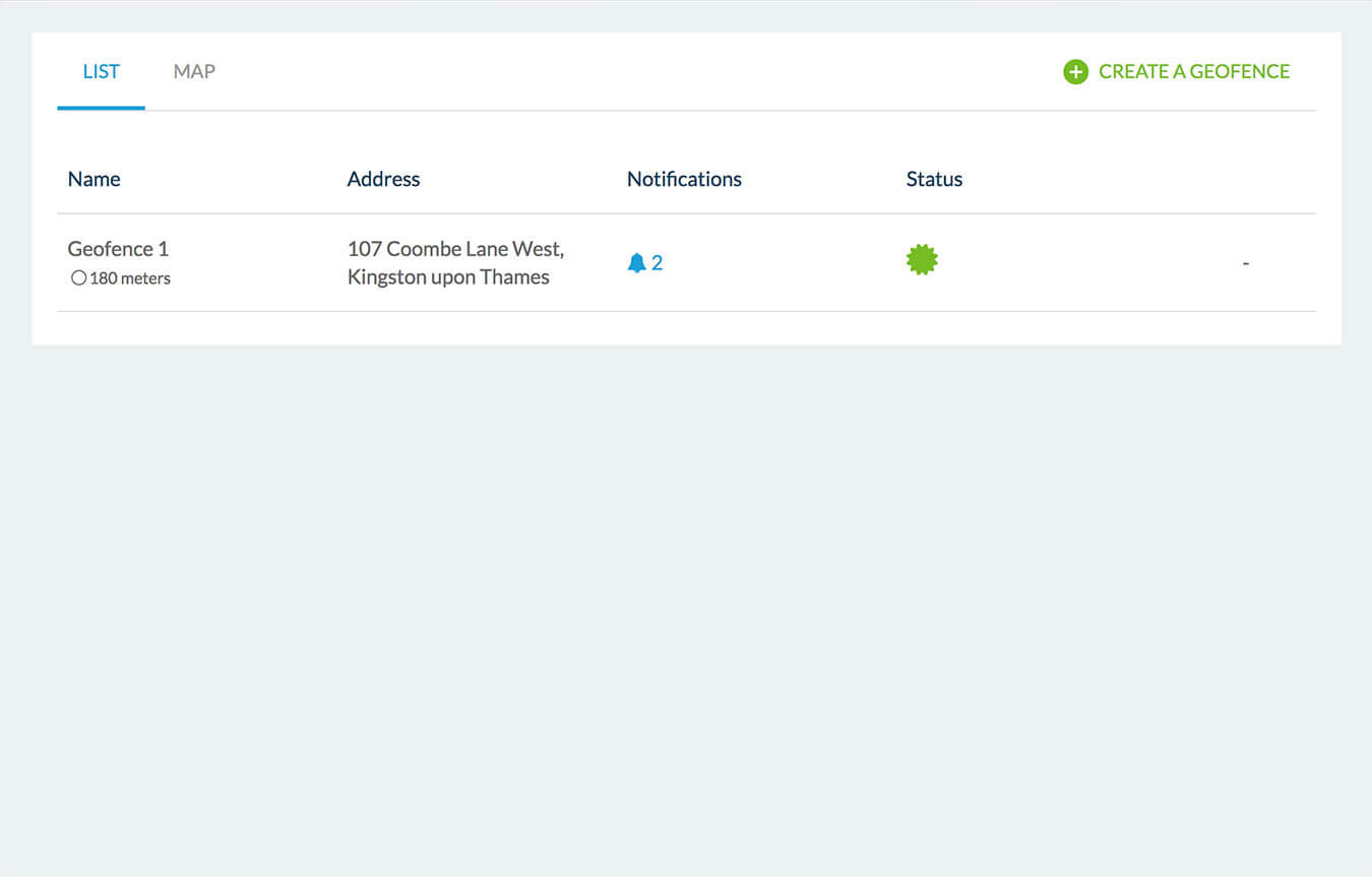 Veja o panorama de todas suas notificações automáticas e suas configurações. Visualize a lista de suas Geofences e suas características.