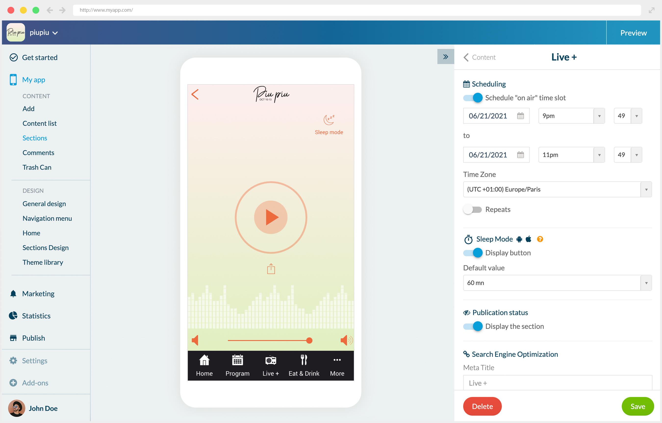 O teu programa será transmitido apenas em datas específicas. Usa a função de programação para teres acesso a determinados momentos do stream audio. No resto do tempo podes promover o programa e informar os users de quais serão as próximas emissões.