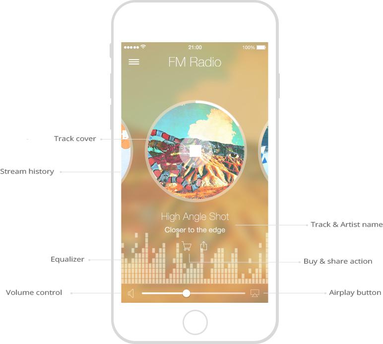 Live + permite fazer a transmissão de M3U stream, apresentar o título, nome do artista e uma foto do álbum. O usuário pode compartilhar o título da música nas redes sociais e também comprar a música. Um registro do histórico das 5 músicas mais ouvidas será disponibilizado no app.