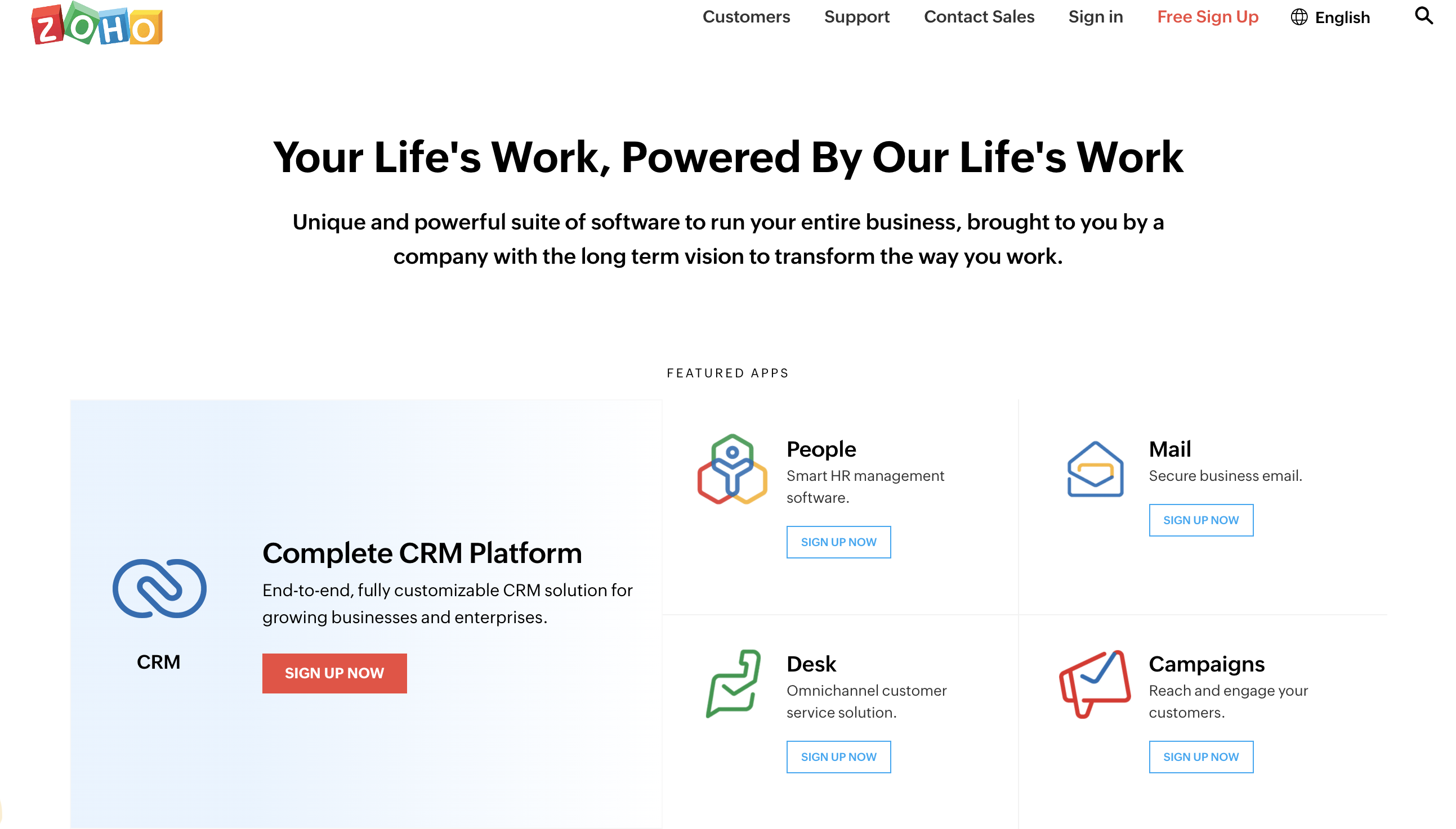 O Zoho se integra perfeitamente com outros softwares Zoho, como Zoho Books, Zoho Inventory, Zoho Sites ou Zoho People.