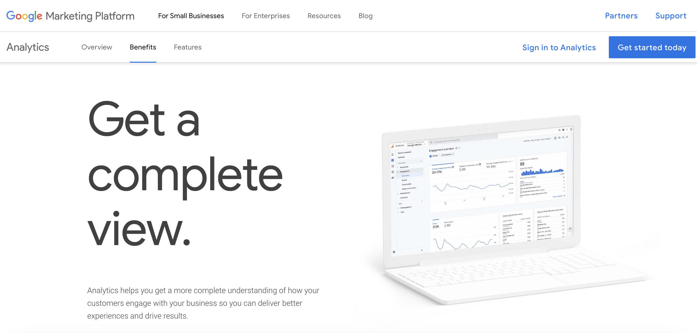 O Google Analytics é um software totalmente gratuito que fornece informações valiosas sobre quem está visitando seu site ou app e como eles interagem com ele. Ele permite que você entenda como seus clientes interagem em seus sites e apps, durante todo o ciclo de vida. Por exemplo, o número de visitantes do seu site por dia, semana, mês ou qualquer período de tempo que você escolher, de onde vêm esses visitantes ou as palavras-chave que as pessoas estão usando no Google para encontrar seu site.