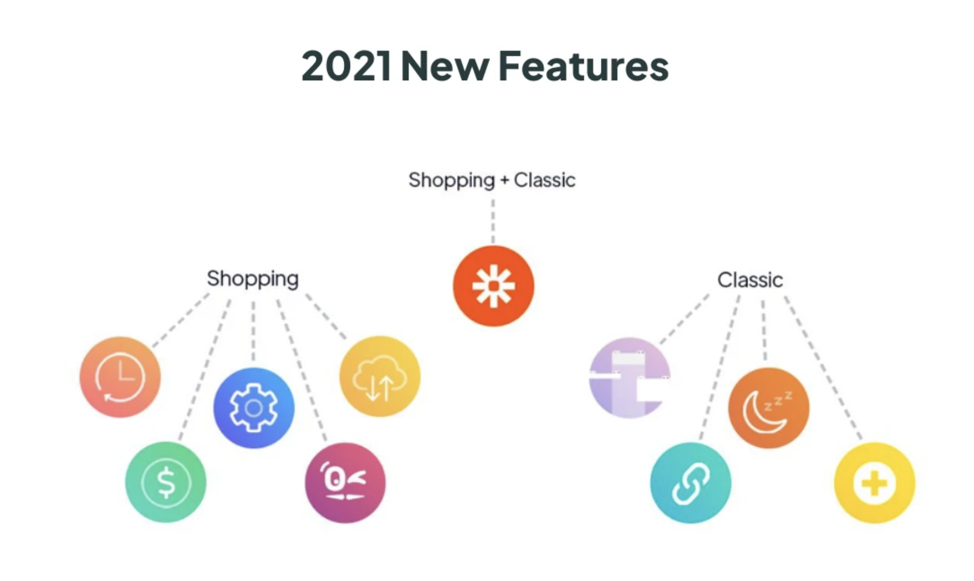 Uma das funcionalidades mais popular este ano foi sem dúvida o conector Zapier para ambos os aplicativos Shopping e Classic.