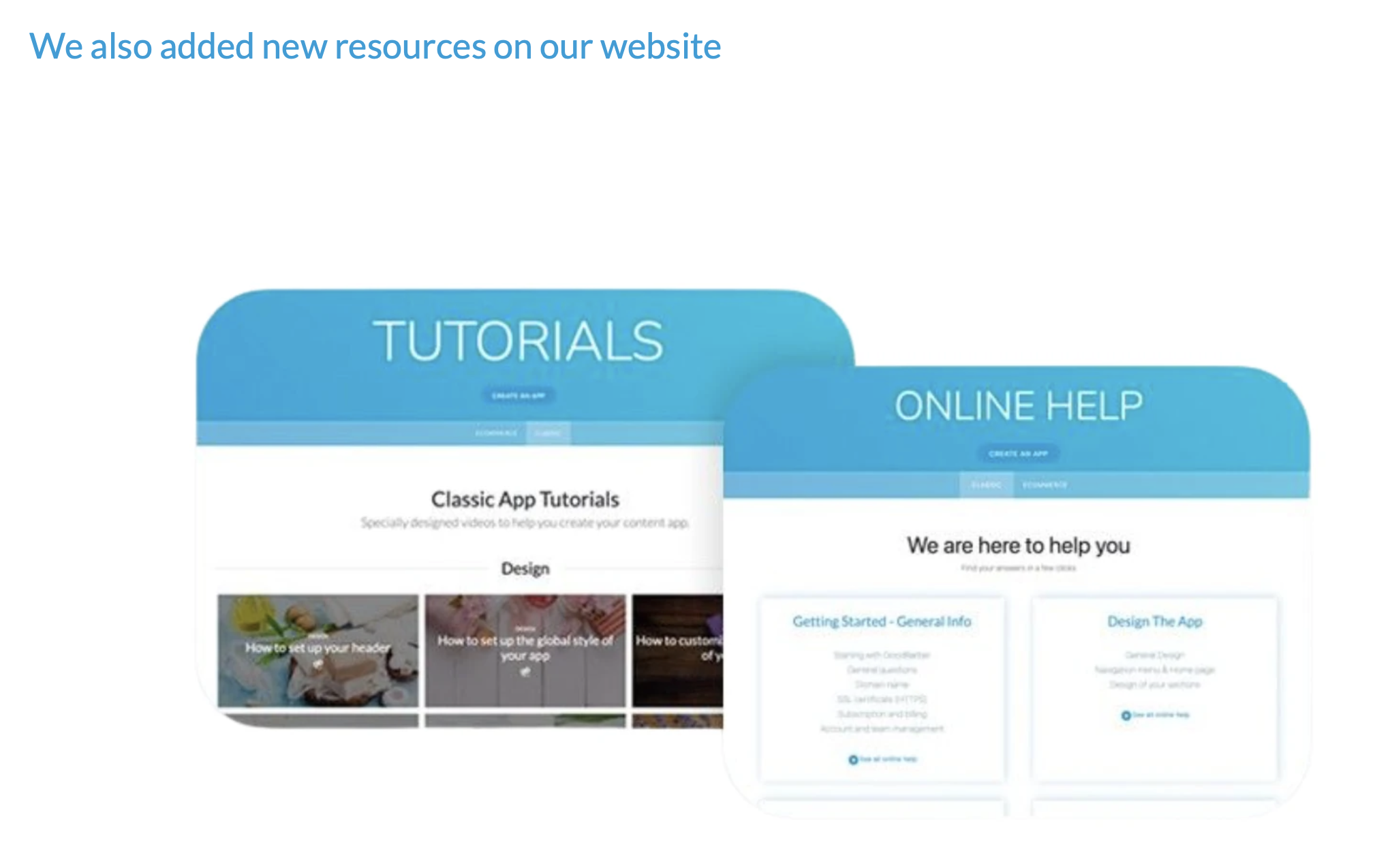 Com o lançamento da GoodBarber Academy, queríamos também que algumas das nossas funcionalidades já existentes fossem mais acessíveis. Foi por isso que adicionamos os nossos tutoriais vídeo e Ajudas Online ao nosso website.