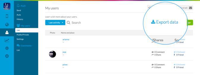 A opção de exportação será disponibilizada para que possas, de uma forma muito fácil, exportar os teus users num ficheiro CSV.