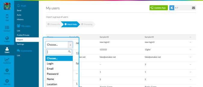 A informação do teu ficheiro CSV será apresentada dentro do back office GoodBarber pelo que apenas terás que escolher o campo/informação que corresponde ao mesmo.