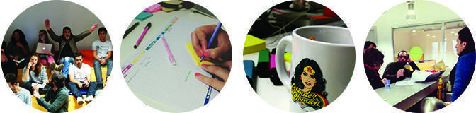 De nossa parte, temos várias técnicas para estimular a nossa criatividade. Iniciando com a música, que é muito presente no nosso escritório, mas também Game Storming por exemplo... Com esses truques, nunca há um momento de tédio por aqui!
