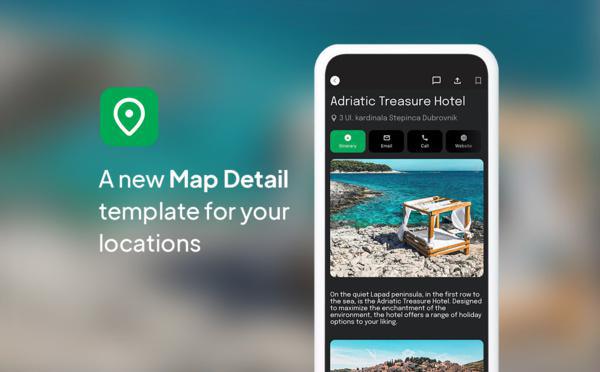 É com grande entusiasmo que lhe apresentamos hoje o nosso novo modelo de visualização de detalhes para a secção Mapa: o ToolBar Up Classic Template. Moderno, elegante e intuitivo, redefine a forma como pode apresentar detalhes de localização na sua aplicação. O ToolBar Up Classic Template destaca-se pelo seu design contemporâneo e animação inteligente. Assim que visualizar os detalhes de uma localização, verá os botões de ação posicionados na parte superior da página, logo abaixo do título. No entanto, o que realmente torna este modelo especial é a animação subtil que ocorre quando se desloca para baixo na página. À medida que se desloca para baixo, os botões de ação deslocam-se para a parte inferior do ecrã, de modo a estarem sempre ao seu alcance.