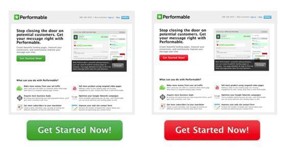 Aqui está um exemplo em como alterar apenas um único botão de verde para vermelho, aumentou a taxa de conversão de um website para 21%: