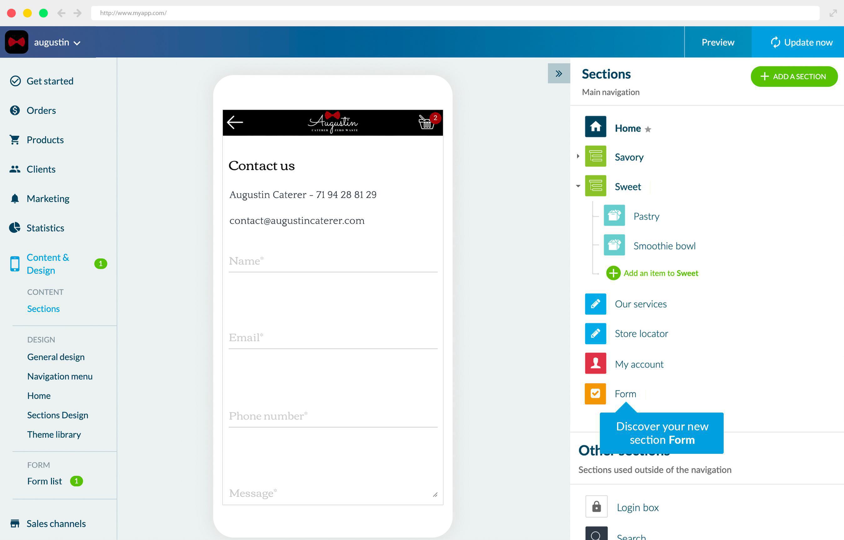Já disponível no App Clássico, o Formulário de Contato já está disponível para o seu App de Compras.