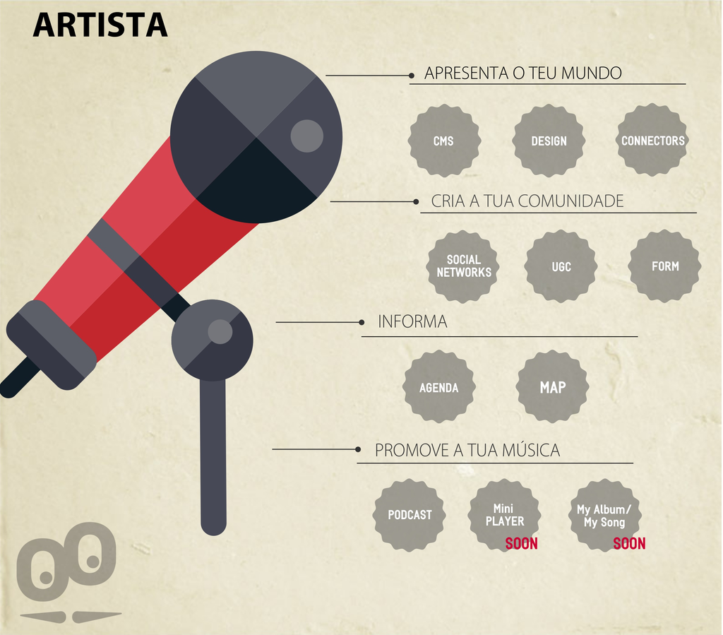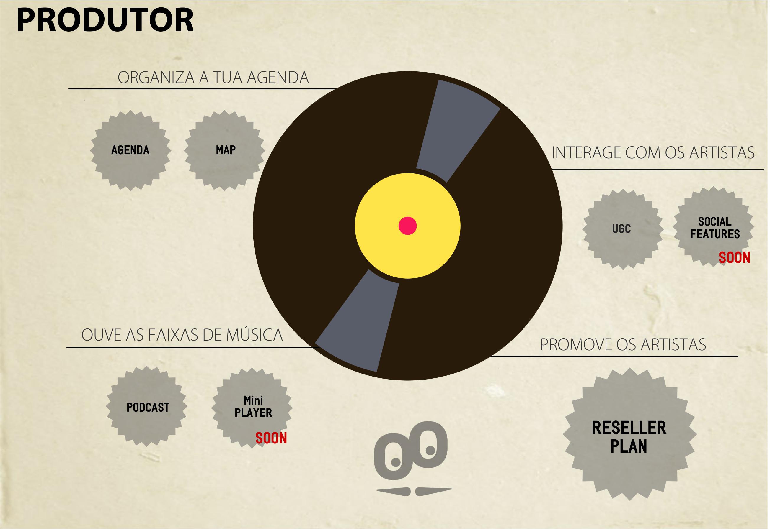 - Acesso ao conteúdo/audio: O produtor deve sempre ter o acesso ao audio do artista. A seção Podcast ou o MiniPlayer são excelentes para promover estas funcionalidades.