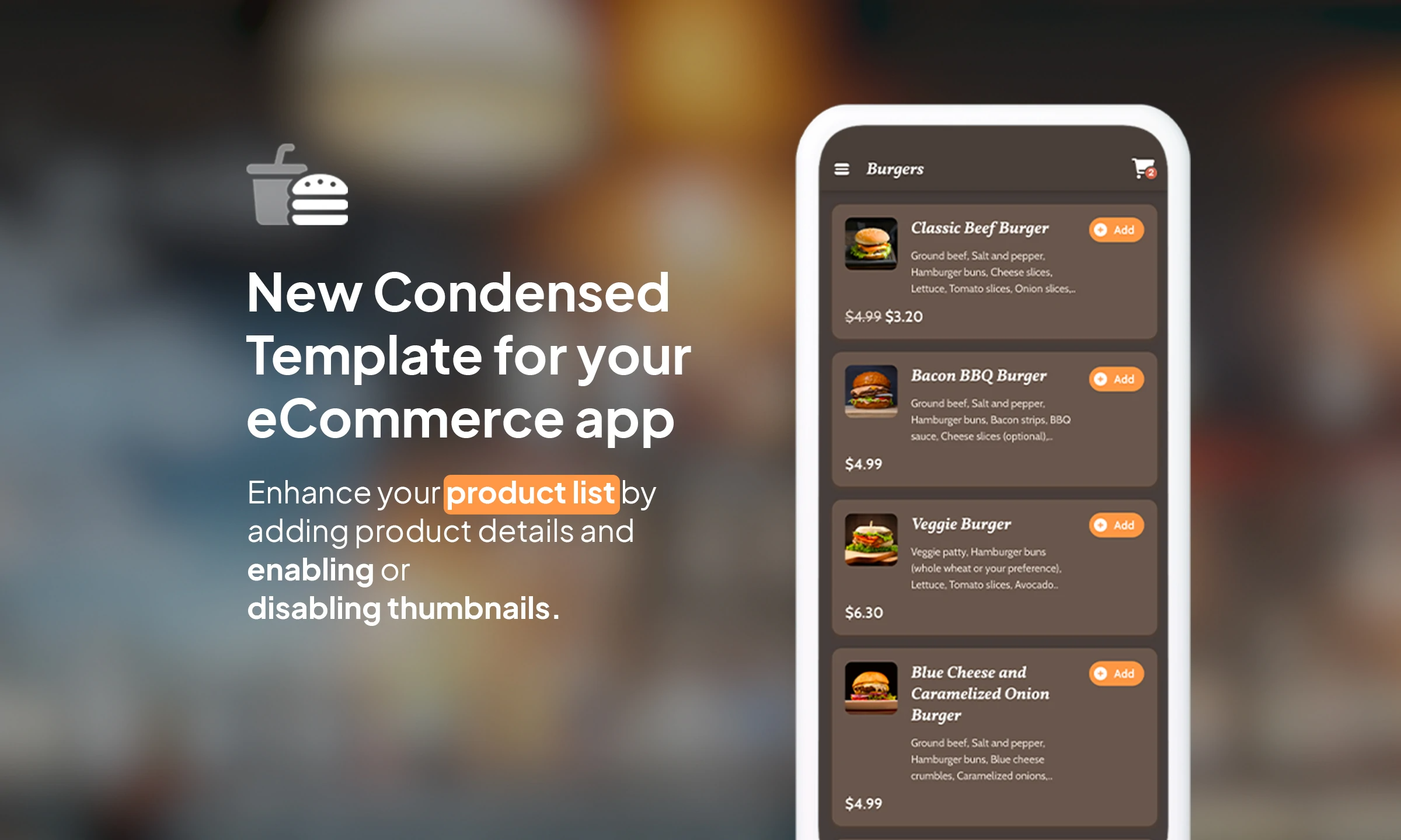 Procurando uma nova abordagem para melhorar as listagens de produtos em seu aplicativo de comércio eletrônico? Temos o prazer de apresentar nosso último design: o modelo Condensed, projetado para levar a experiência de compra a um nível totalmente novo.