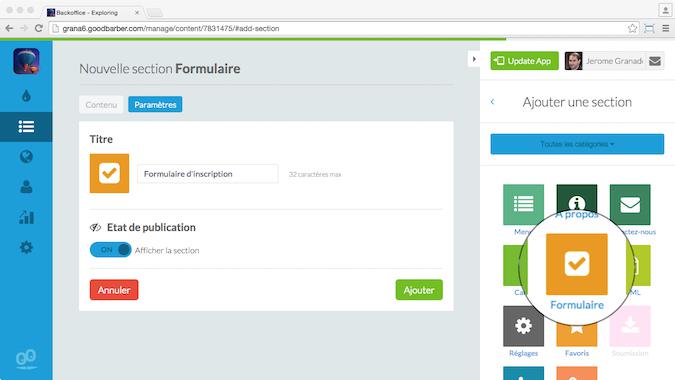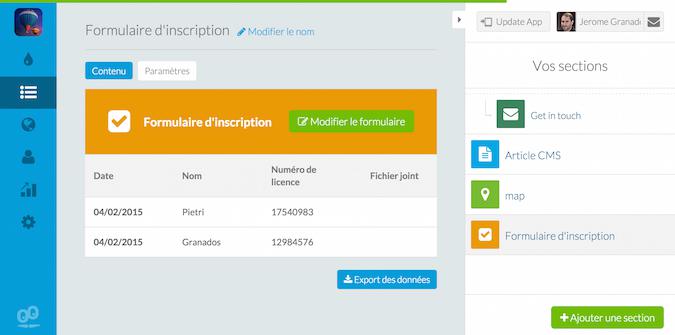 Como o nome indica, esta seção permite adicionar mais do que um formulário na tua app. A seção de formulário foi desenhada para permitir criar todo o tipo de formulários que poderás necessitar para melhorar a tua app, por exemplo: registros, questionários, reservas, etc.