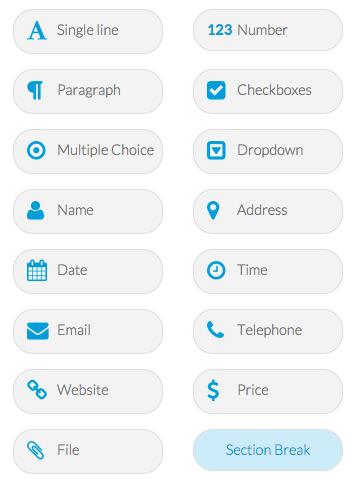 A imagem em cima apresenta todos os campos disponíveis que podes adicionar no formulário.