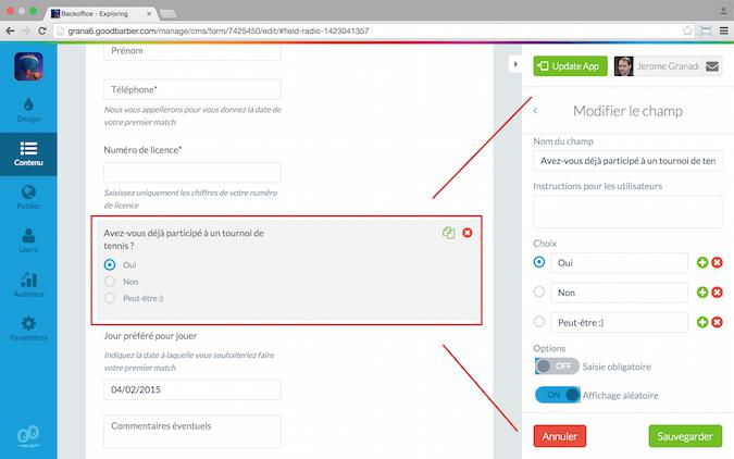 Assim que o conteúdo do formulário estiver pronto, podes definir o design. A ação requerida para definir o desing é idêntica a todas aquelas requeridas pela tua app.