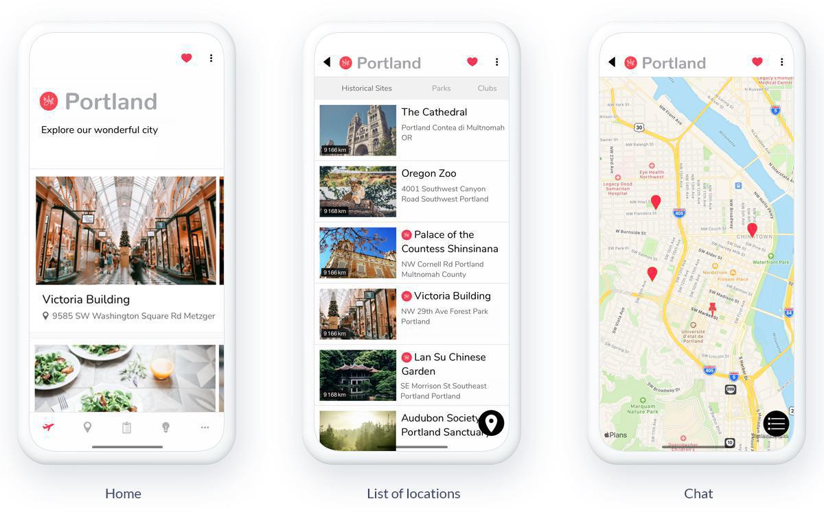 Aqui, para o exemplo do Portland App, trabalhei na seção "Lazer", inserindo locais dentro da cidade, relevantes para esse tipo de atividade.