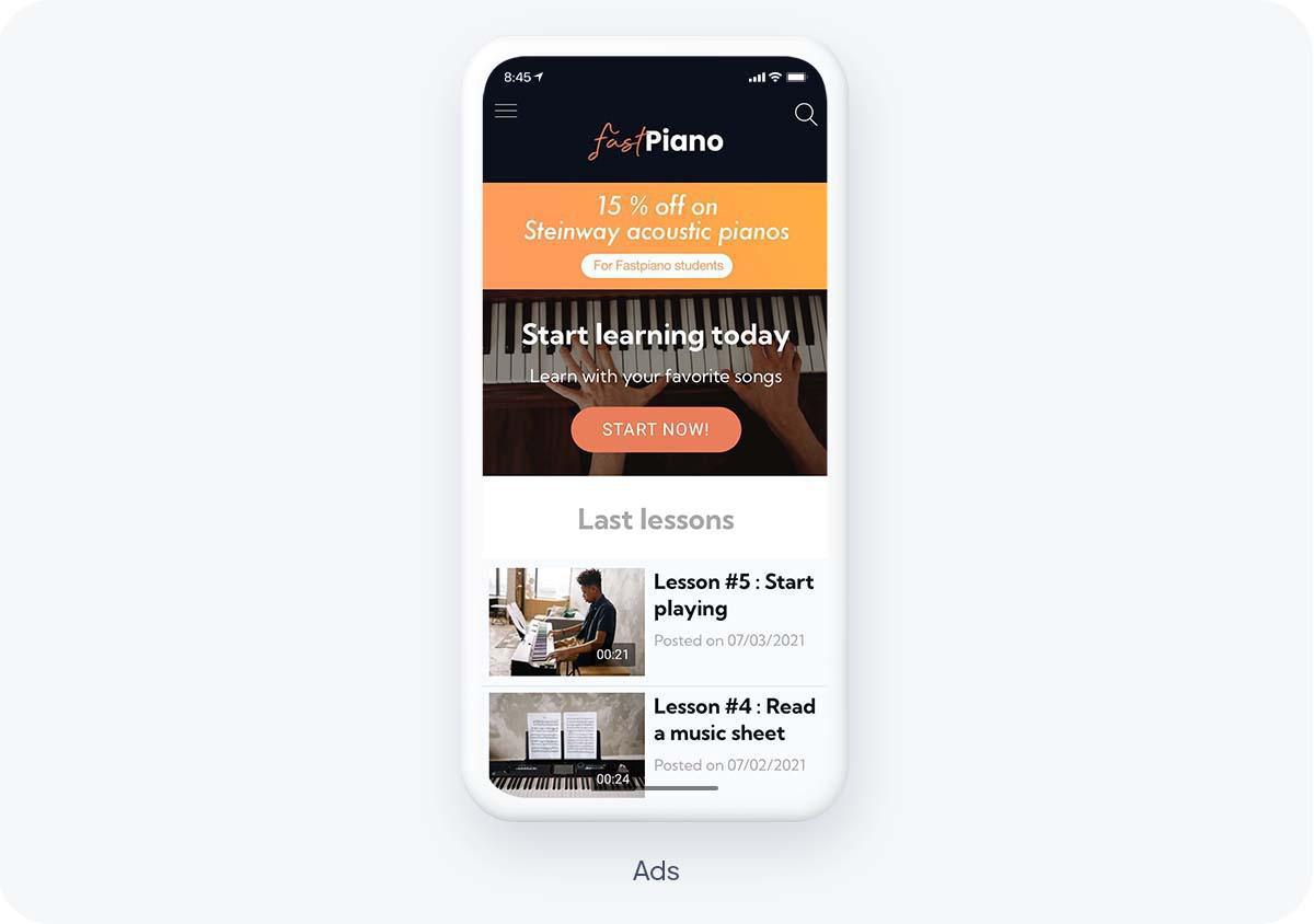Os aplicativos de e-learning não são apenas para cursos informativos, acadêmicos e formais, mas também para muitos tipos diferentes de cursos. Cozinha, pintura, escultura, fotografia, mas também música, podem ser matérias de cursos online. O app FastPiano é um aplicativo dedicado a aprender piano online através de diversos tipos de conteúdos diversificados.