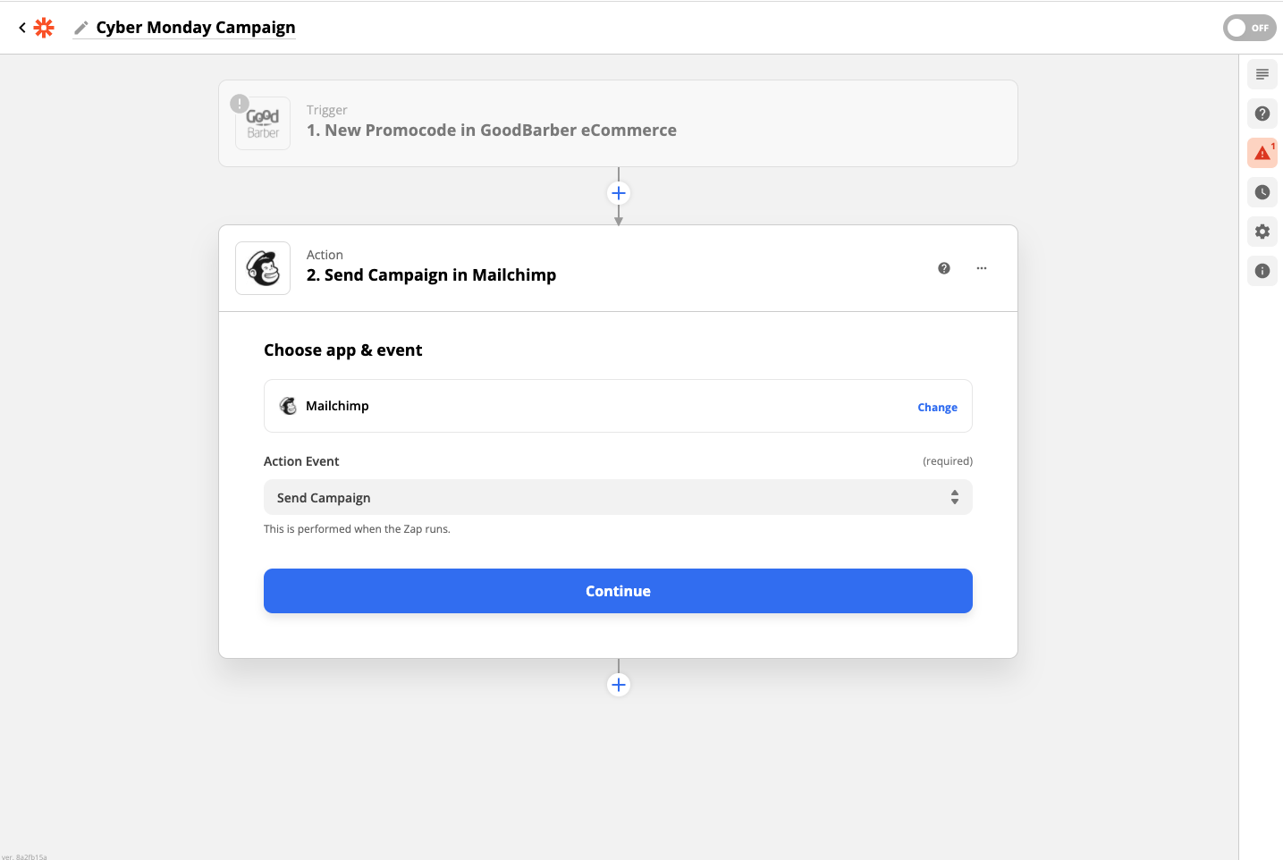 Agora que sua campanha de email está resolvida, é hora de criar um zap no Zapier para conectar seu aplicativo GoodBarber Shopping e o Mailchimp.