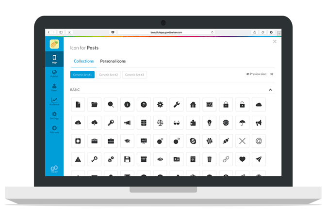 Algumas semanas atrás, fizemos uma atualização referente a um detalhe muito importante para a aparência final do seu app: os ícones. Agora você pode escolher entre mais de 1.500 ícones deslumbrantes diretamente em seu back office. Recebemos um excelente feedback de nossos usuários, portanto, decidimos fazer ainda mais sobre isso.