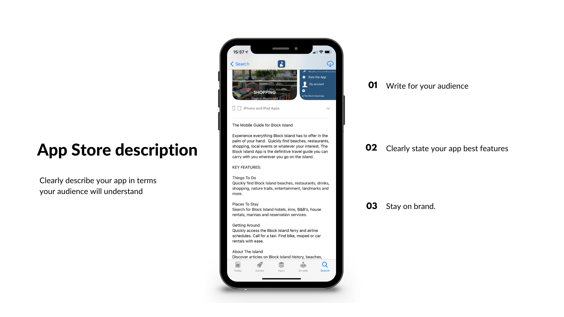 A descrição do aplicativo é onde você tem a oportunidade de dizer aos visitantes por que eles precisam fazer o download do seu aplicativo. É a sua chance de se conectar com eles e destacar os benefícios do seu aplicativo. Deve ser escrito com cuidado. No entanto, na App Store, a descrição não é um fator de classificação. Portanto, para o seu ASO, você precisa prestar muita atenção às palavras-chave e onde usá-las (campo de palavra-chave, nome do aplicativo, subtítulo do aplicativo)
