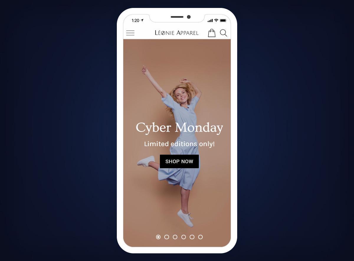 Dedique uma coleção do seu Shopping App ao Cyber Monday Sales. Grandes descontos, oferta cibernética exclusiva, o produto especial disponível apenas neste dia.