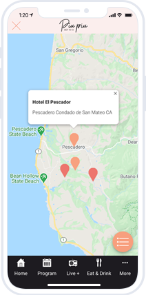 Um mapa pode ser usado para localizar um endereço específico ou incluir um número ilimitado de pontos, por exemplo, para uma lista de lojas. Cada ponto pode conter informações adicionais, incluindo fotos, links ou até vídeos. Cada ponto também pode ser usado para gerar uma rota para o usuário. Uma ferramenta a ser divulgada para empresas, por exemplo, para direcionar o cliente a um determinado estabelecimento. Um recurso para promover também aos atores do turismo . Dica: Se você deseja fazer um aplicativo com listagens de empresas, é melhor usar o Mapa do que os Artigos. Porque, o mapa funciona como uma listagem de empresas com texto e fotos, mas também como geolocalização.