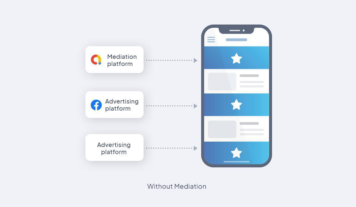 Antes da mediação, você precisava configurar uma rede de anúncios diferente no back office do seu app. Cada rede de anúncios trabalhará para preencher um "contêiner de anúncios".