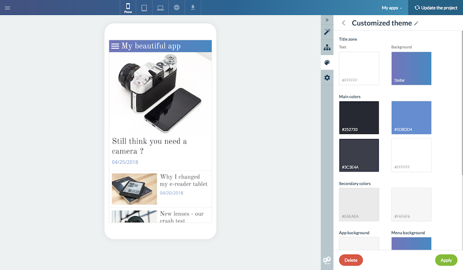 4.5 é uma versão que consolida a versatilidade da GoodBarber para criar os apps do futuro. A GoodBarber enfrenta, sempre, um duplo desafio. Projete a ferramenta que cria apps multi plataforma e imagine a interface que permite aproveitar o poder dessa ferramenta da forma mais intuitiva possível.