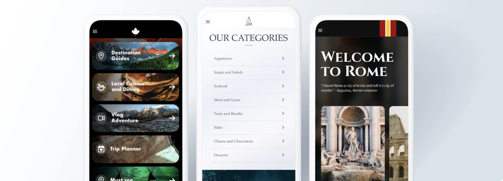 As seções de "Menu" permitem criar uma navegação secundária agrupando seções. Se não conseguir encontrar o que está procurando, ative a extensão Menu de Custom Code para criar um menu totalmente personalizado. Assim, você poderá propor uma navegação específica, uma estrutura diferente ou novas interações.
