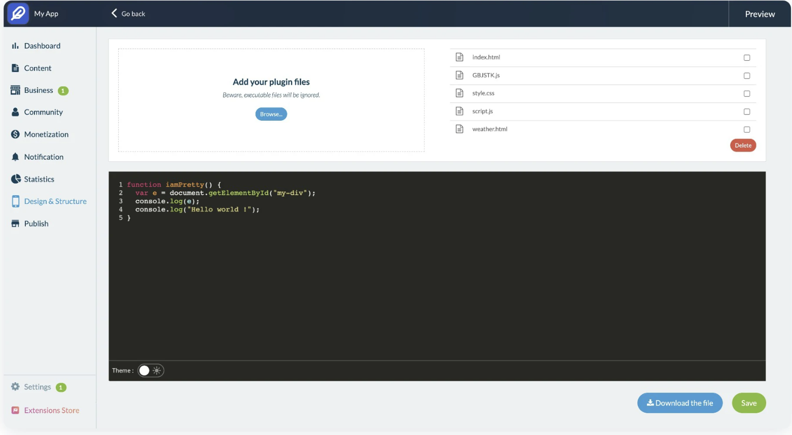 Integramos um editor de texto e um gerenciador de arquivos ao seu back office, proporcionando-lhe um ambiente de trabalho completo para codificar suas personalizações. O editor de texto tem todos os recursos de que você precisa para produzir código com eficiência ( realce de sintaxe, desdobramento de fragmentos de código, numeração de linhas etc).O que acontece com meus plugins existentes ?