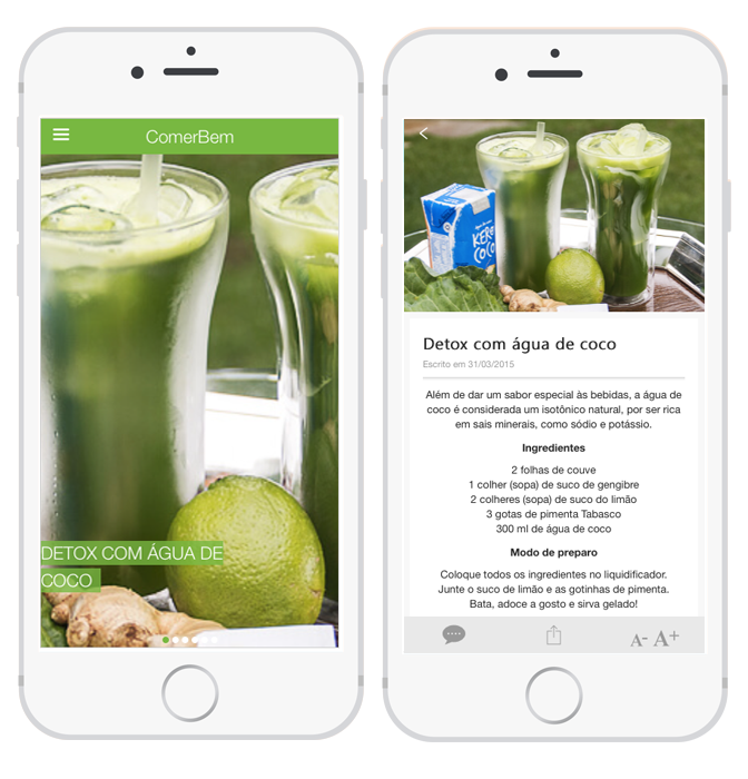 Comer Bem é, provavelmente, a app mais saudável feita com a GoodBarber! Aqui podes encontrar ideias saudáveis e nutritivas para o pequeno-almoço,almoço, lanche e jantar e dicas de como não falhar na dieta. Podes ainda aceder à composição calórica de cada receita, ingredientes e ainda partilhares as receitas nas redes sociais.