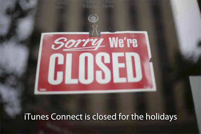 “De Segunda-Feira, 22 de Dezembro até à próxima segunda-feira, dia 29 de Dezembro de 2014, a aplicação do iTunes Connect Loader e o iTunes Connect para iOS vão estar indisponíveis.Podes agendar o lançamento de uma app ou uma mudança de preços a decorrer entre o dia 22 e 29 de Dezembro. Certifica-te que as tuas alterações estão efetivamente agendadas, submetidas e aprovadas até dia 18 de Dezembro de forma a garantir que a tua app se mantenha disponível durante esse período.