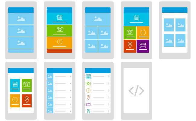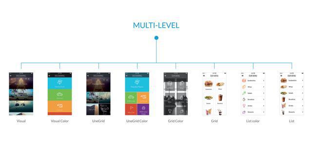 Primeiro que tudo, deves escolher um template. Considera cada template como uma janela de abertura para abrir as secções do teu Menu. Dependendo do estilo que escolheres, serás sempre direcionado para um template onde poderás fazer o upload das tuas imagens (exemplos em baixo), ou escolher cores e ícones (exemplos em baixo).
