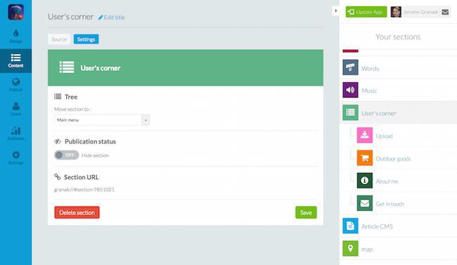 Podes adicionar qualquer tipo de secção dentro do Menu das secções ou mesmo no próprio menu das secções, caso necessites de uma mapa de navegação mais profundo.