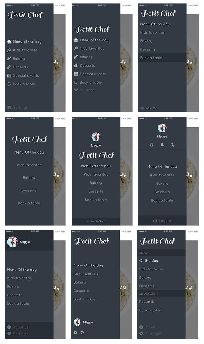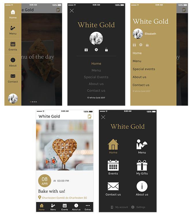 O Menu é utilizado para realizar a navegação secundária dentro do aplicativo. Existem sete conceitos disponíveis — cada um com suas próprias opções avançadas de configuração. Graças a esse variado número de modelos, um dos pontos fortes da GoodBarber 4.0, o Menu completa a Home, distribuindo o tráfego dentro do aplicativo.