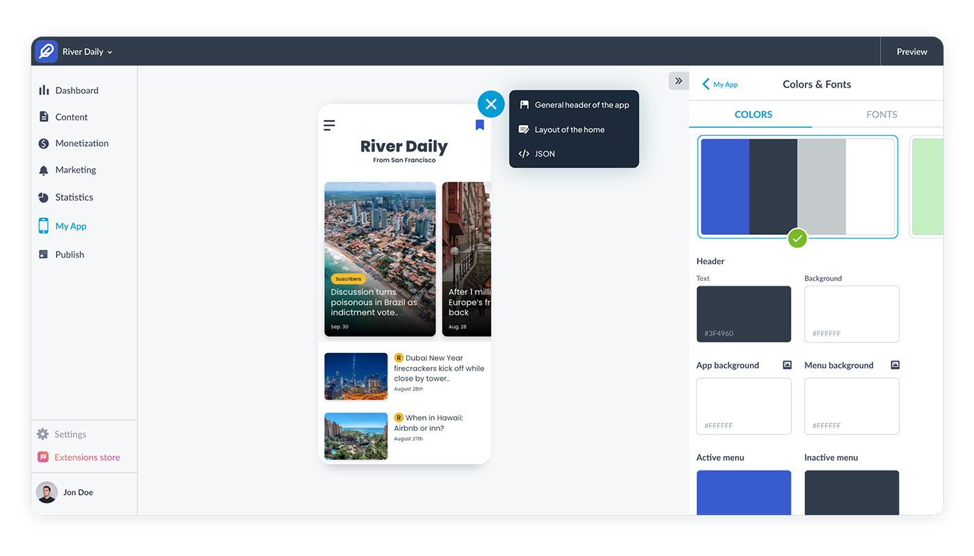 Com a GoodBarber, isso resultou na democratização da criação de apps móveis. De fato, sua interface gráfica do usuário e a funcionalidade de arrastar e soltar tornam a criação de apps mais fácil para todos, independentemente do conhecimento técnico.