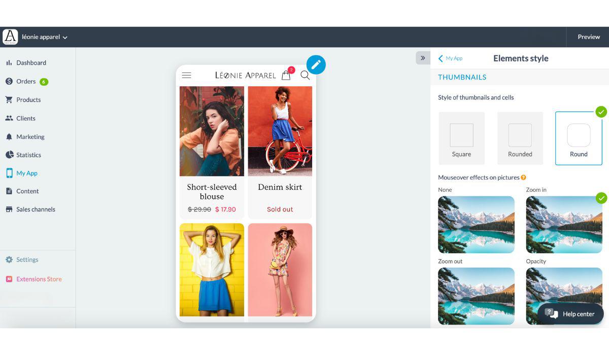 Boas notícias para os usuários dos nossos aplicativos de comércio eletrônico: agora você também pode gerenciar as margens e as formas do seu aplicativo globalmente no menu Elements Style.
