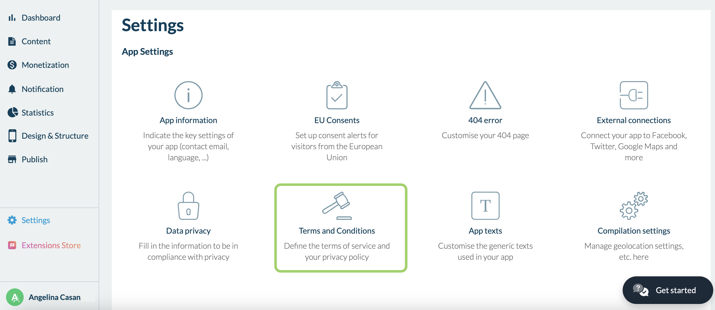 Depois de escrever e salvar essas políticas, elas serão exibidas em duas novas seções no seu app. Essas seções aparecerão no menu "outras seções". Você pode, como de costume, personalizar o design dessas seções.