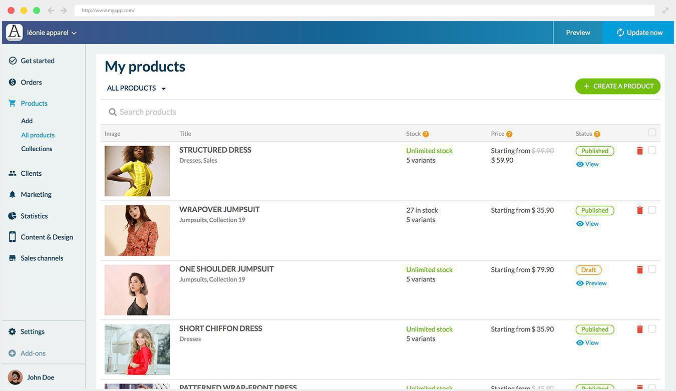 O GoodBarber Shopping App possui todos os recursos para iniciar seu negócio online. Num único back office, você gerencia os seus produtos, pedidos, clientes e design de apps. A interface da GoodBarber eCommerce é totalmente dedicada ao gerenciamento da sua loja. Permanece elegante e intuitiva.