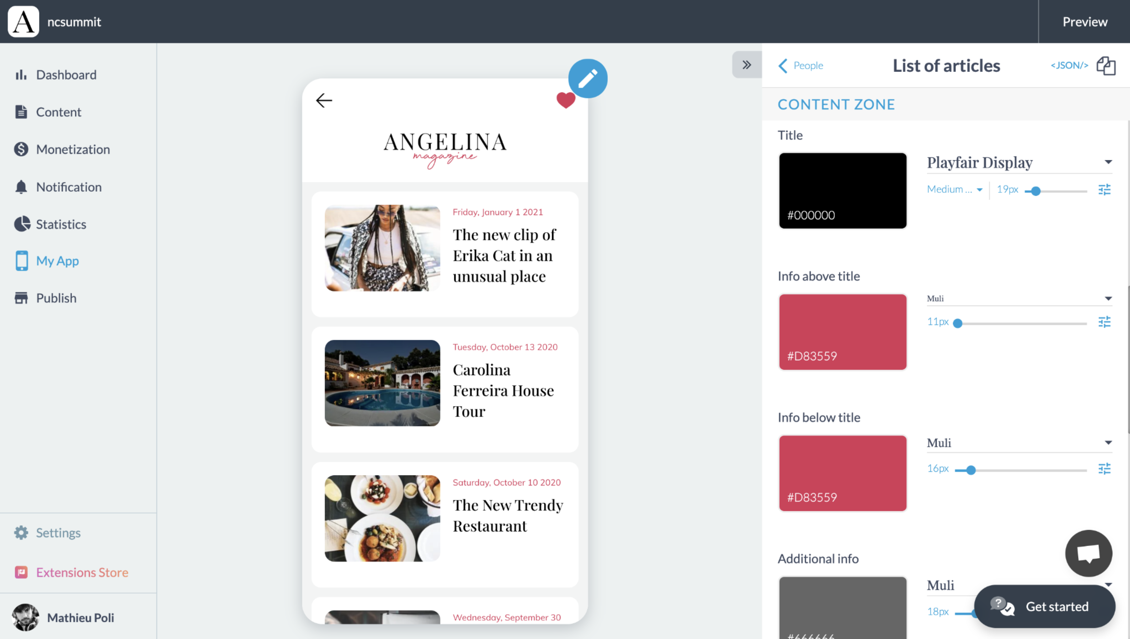 Agora terminei meu design, mas, no final, não gosto deste modelo e quero mudá-lo. Com um único clique, posso trocar para outro modelo mais imersivo com uma imagem em tela cheia. E esta é a força de um produto integrado como a GoodBarber, todas as configurações que escolhi são automaticamente transferidas para o novo layout.