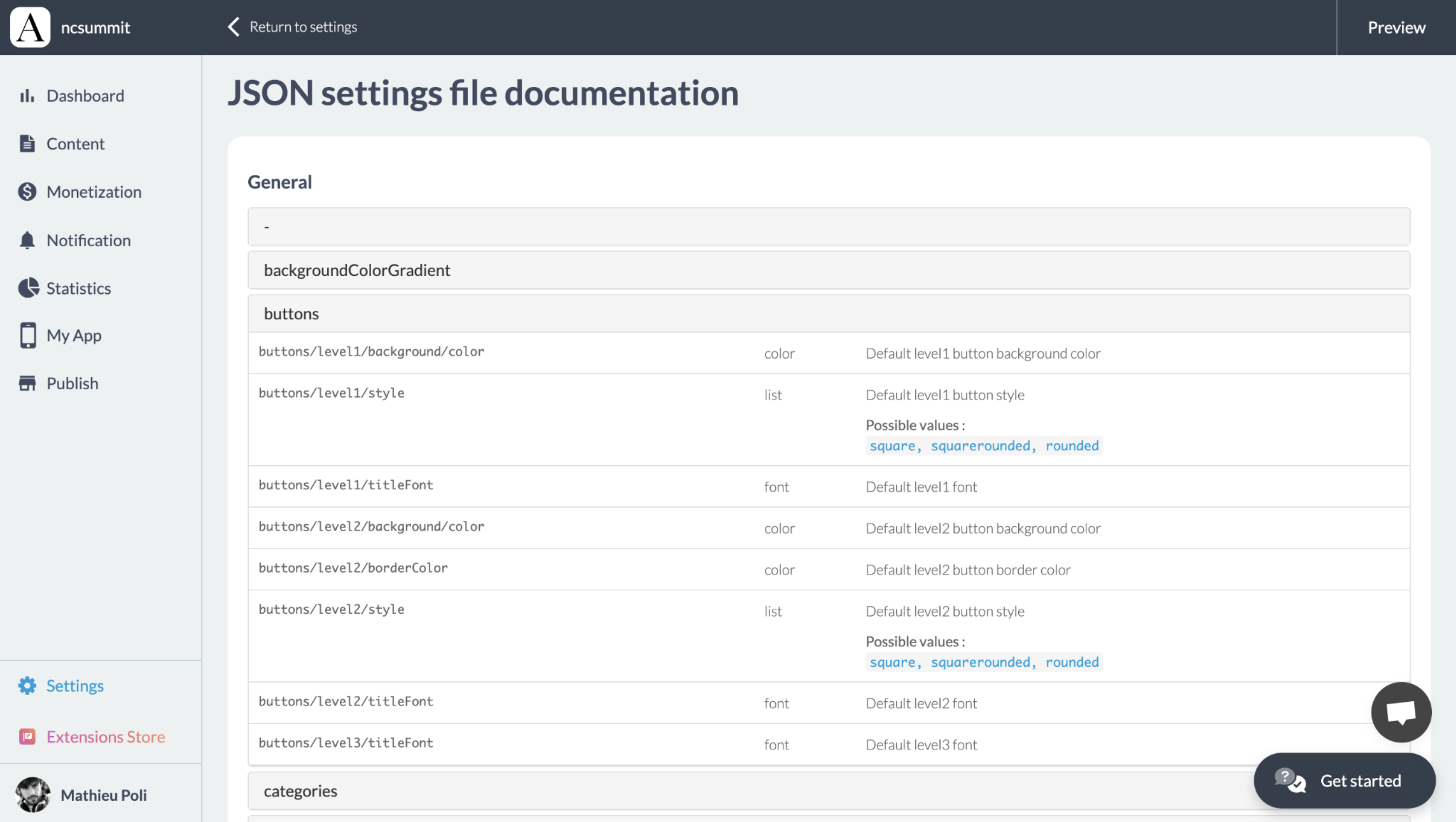 Como saber quais parâmetros existem? Existe uma documentação que você pode encontrar no seu painel GoodBarber. Esta lista pode parecer realmente longa, mas todos esses parâmetros são baseados no nosso sistema de design, que é construído com base em uma base atômica. Isso significa que você sempre encontrará formatos e parâmetros de objetos semelhantes.