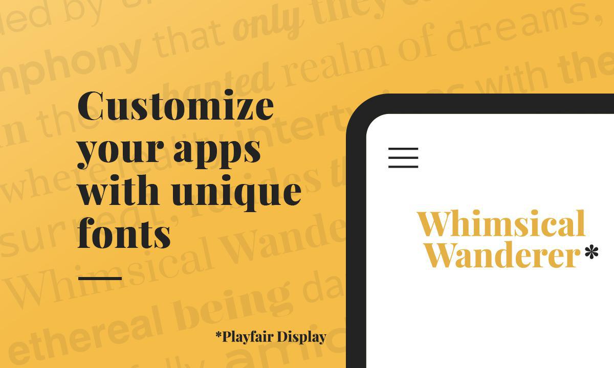 Fontes personalizadas permitem que você diferencie seu app de todos os outros. Agora você pode escolher uma fonte que reflita perfeitamente a essência de sua marca ou conteúdo. Elas são um elemento-chave na construção da imagem de sua marca. Elas melhoram a consistência visual de seu app e o tornam memorável para seus usuários.