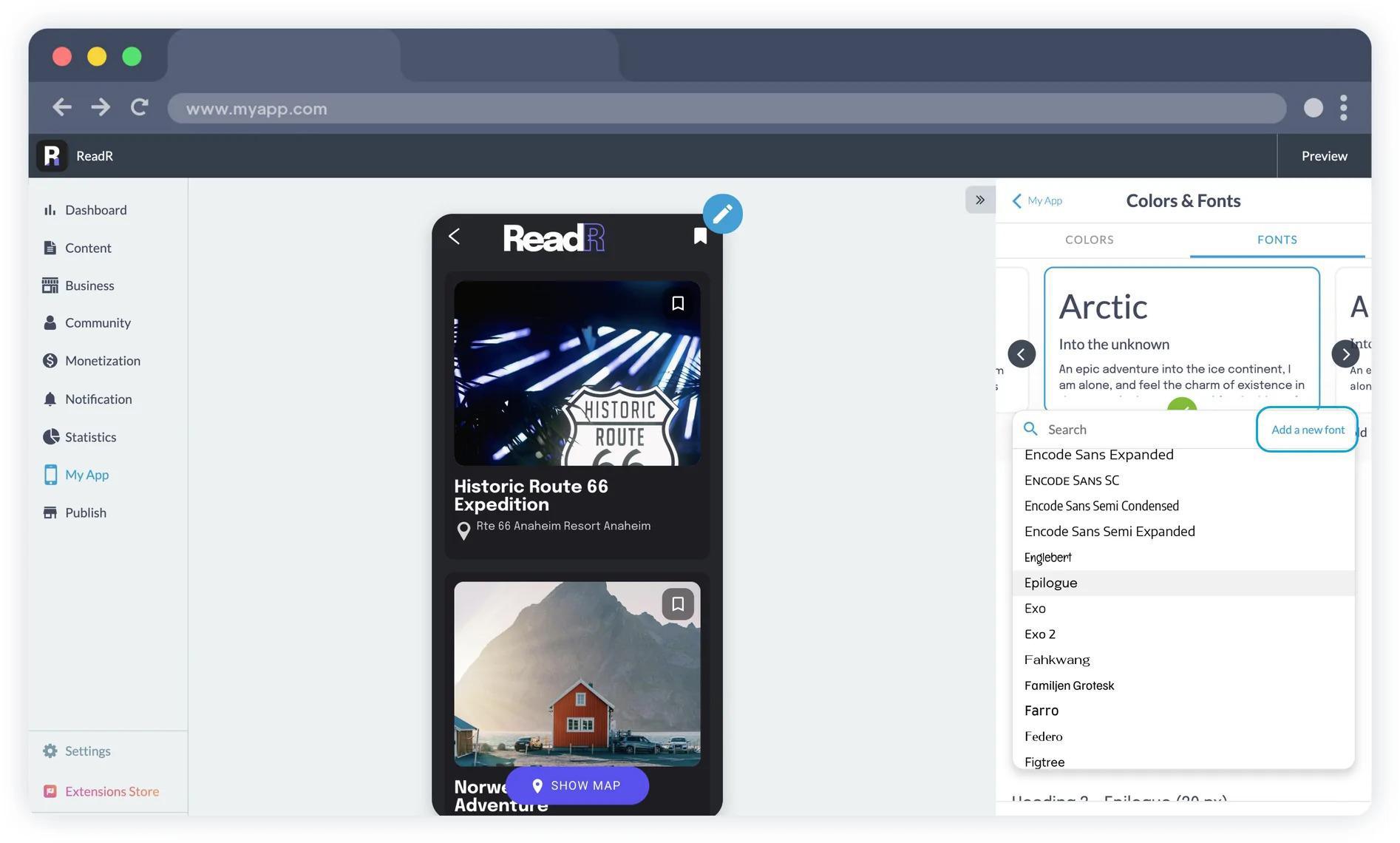 Estamos empolgados em apresentar um novo recurso que revolucionará a forma como você projeta seus apps: a capacidade de adicionar suas próprias fontes diretamente do painel de controle da GoodBarber. As fontes desempenham um papel crucial na criação da identidade visual de seu app. Elas ajudam a definir o clima e o estilo de seu aplicativo. Com este novo recurso, agora você tem o poder de expressar sua criatividade sem limites.