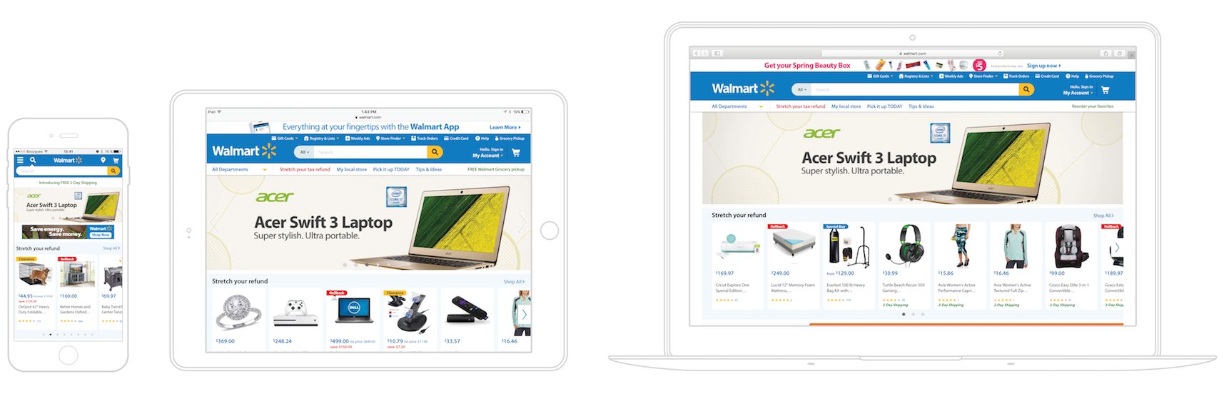 O Walmart é um varejista multinacional, cujo principal objetivo é ajudar as pessoas a economizar quando fazem compras. Agora, em seu Progressive Web App, eles estão oferecendo aos clientes a experiência de compras on-line perfeita, independentemente de onde eles estão e qual dispositivo eles estão utilizando.