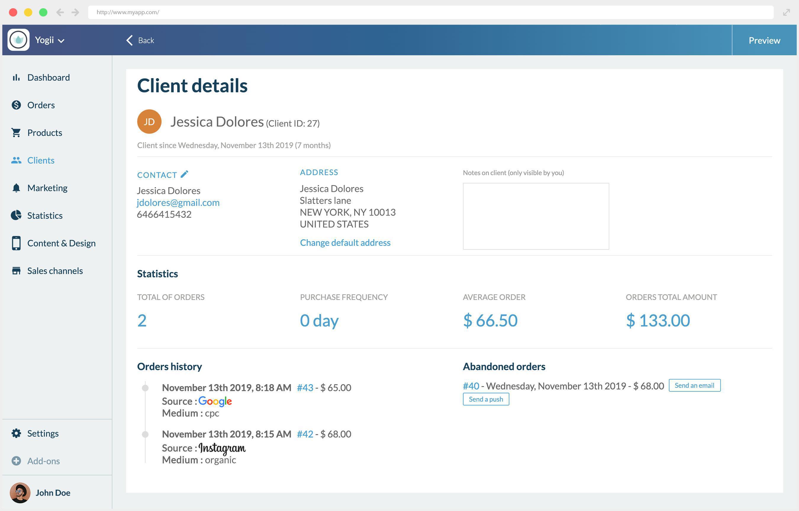 Com o nosso novo add-on "Pedido abandonado", agora você pode tomar medidas para recuperar esses pedidos com emails dedicados ou notificações push.