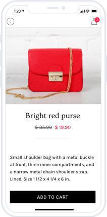 A página do produto é o principal recurso dos aplicativos de compras. Na verdade, esta página reúne todas as informações úteis sobre cada produto (preço, tamanho, cor, características, fotos...). Também é possível criar variantes de produtos para oferecer variações de tamanho, cor, fragrâncias... Você pode adicionar até 9 fotos para destacar os produtos de seus clientes. Um truque de marketing comum para aumentar as vendas também é adicionar produtos semelhantes (sugestões) à página do produto. O objetivo é gerar interesse em outro produto e, consequentemente, gerar vendas adicionais. Seus clientes ficarão realmente impressionados com as opções que você oferece, o valor de seus produtos no aplicativo e, principalmente, as opções que lhes permitirão aumentar suas vendas.