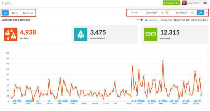 No seu app, você pode encontrar os SDKs de Google Analytics, Flurry e Countly (apenas para iOS e Android) que são fornecidos assim que você conecta, aí você tem acesso a uma infinidade de dados sobre as versões iOS, Android e HTML5.