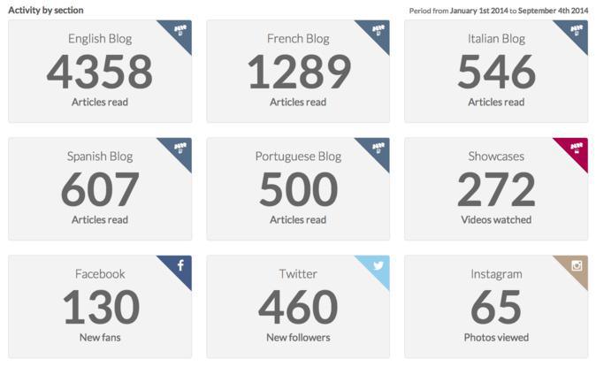 As estatísticas editoriais dão indicação sobre os interesses dos seus usuários, elas permitem não apenas que você veja as secções que eles preferem, mas também que atividades seus leitores fazem em cada secção; quantos artigos eles leram, quantas fotos abriram, quantas curtidas os seus artigos conseguiram no Facebook, etc...